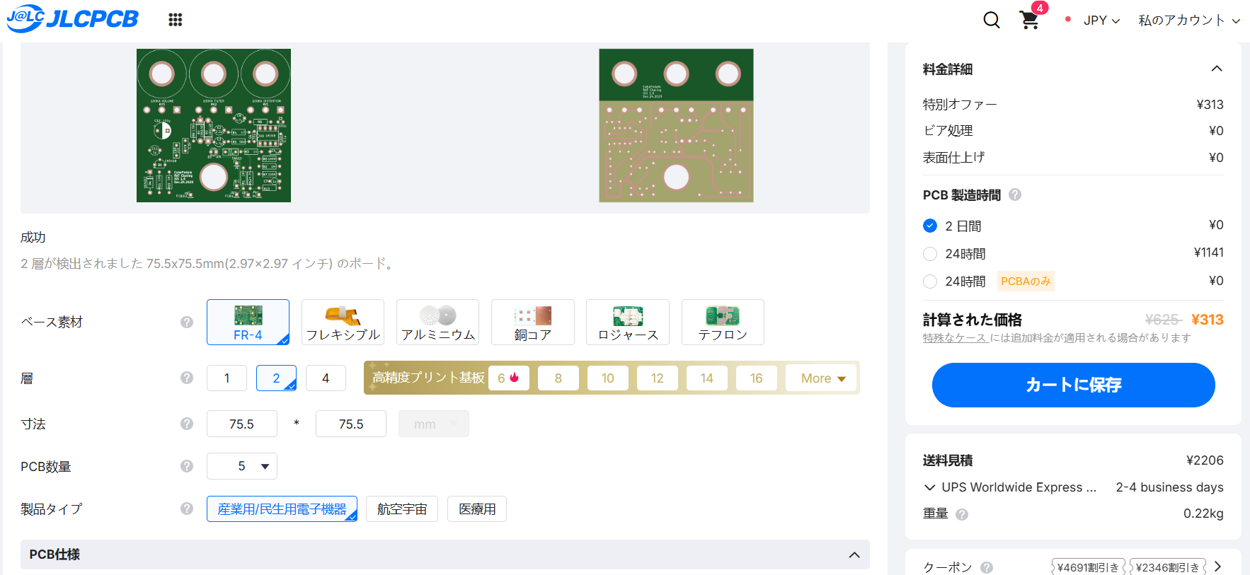 ところがどうやら、これらのサービスはコスト的に個人でも手が出せる金額なようなのです。なのでJLCのこれらのサービスを使いたくなってきました。