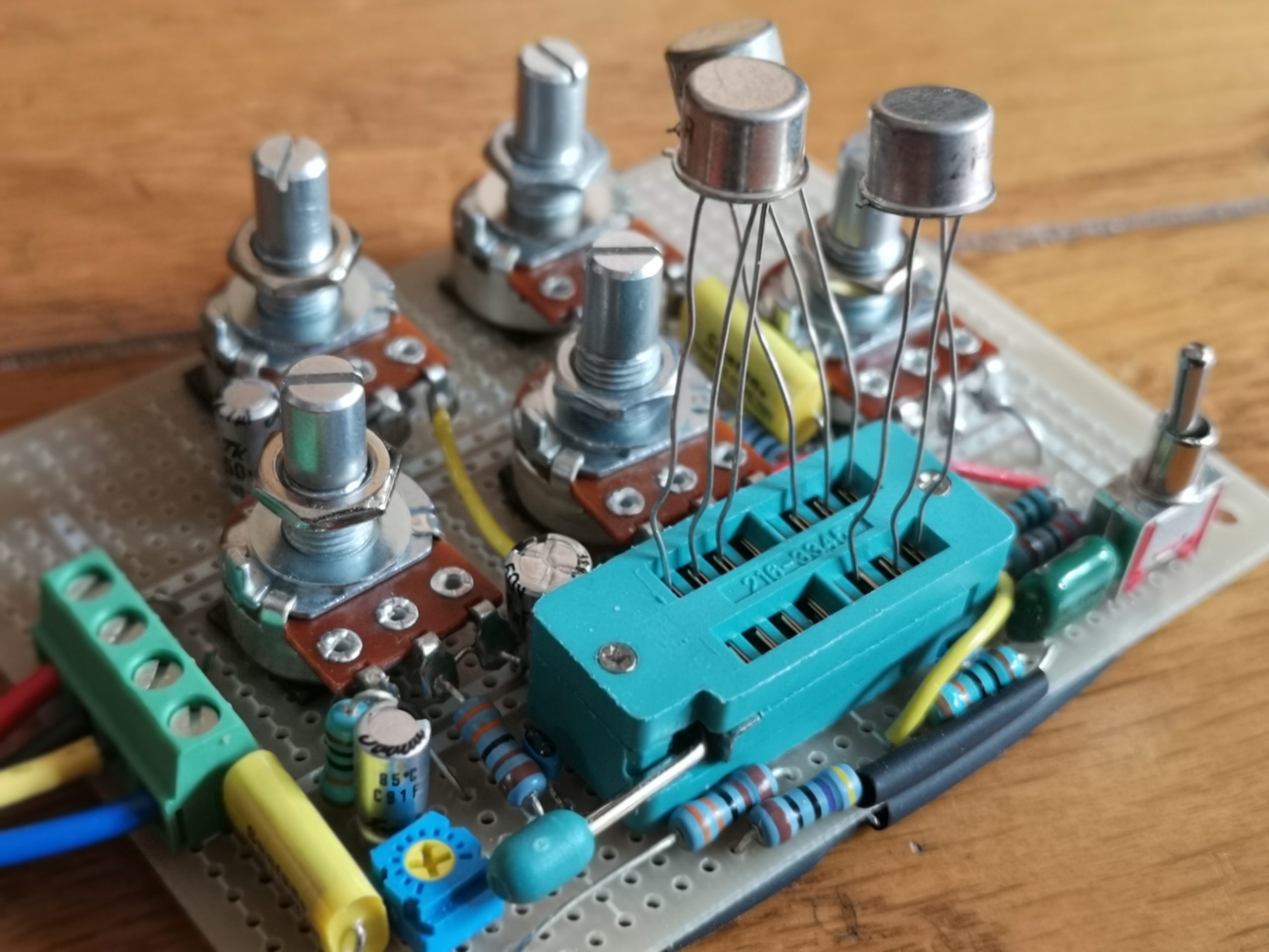 貴重な?ゲルマニウムトランジスタなので、ソケットの代わりに基板用のワンタッチ端子台使いました。