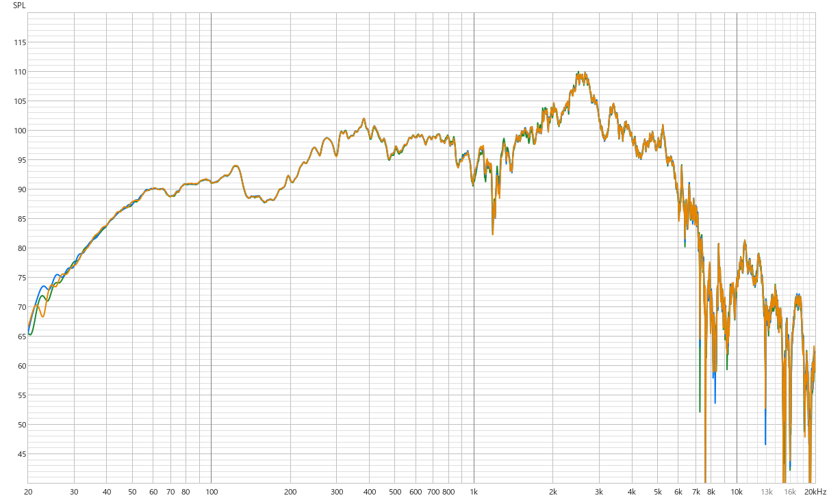 パワーアンプを通すとほんのわずかに低域側が細くなるものの、基本的にパワーアンプは周波数特性に色付けしないということが判ると思います。
