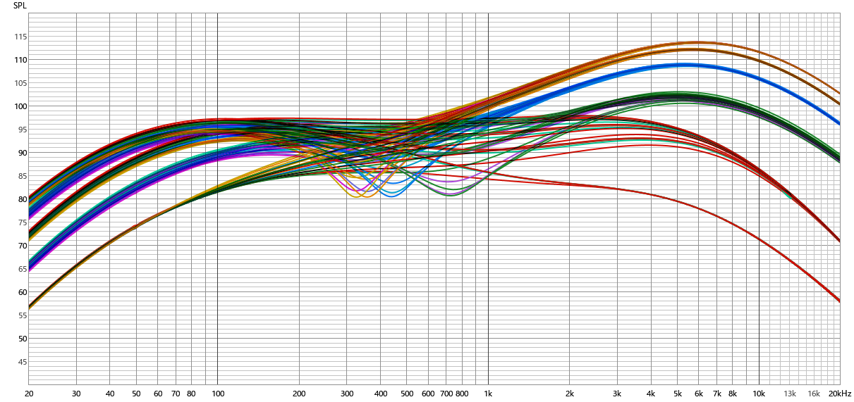 いずれも、プリアンプは、トレブル5、ミドル5、ベース5で計測しています。