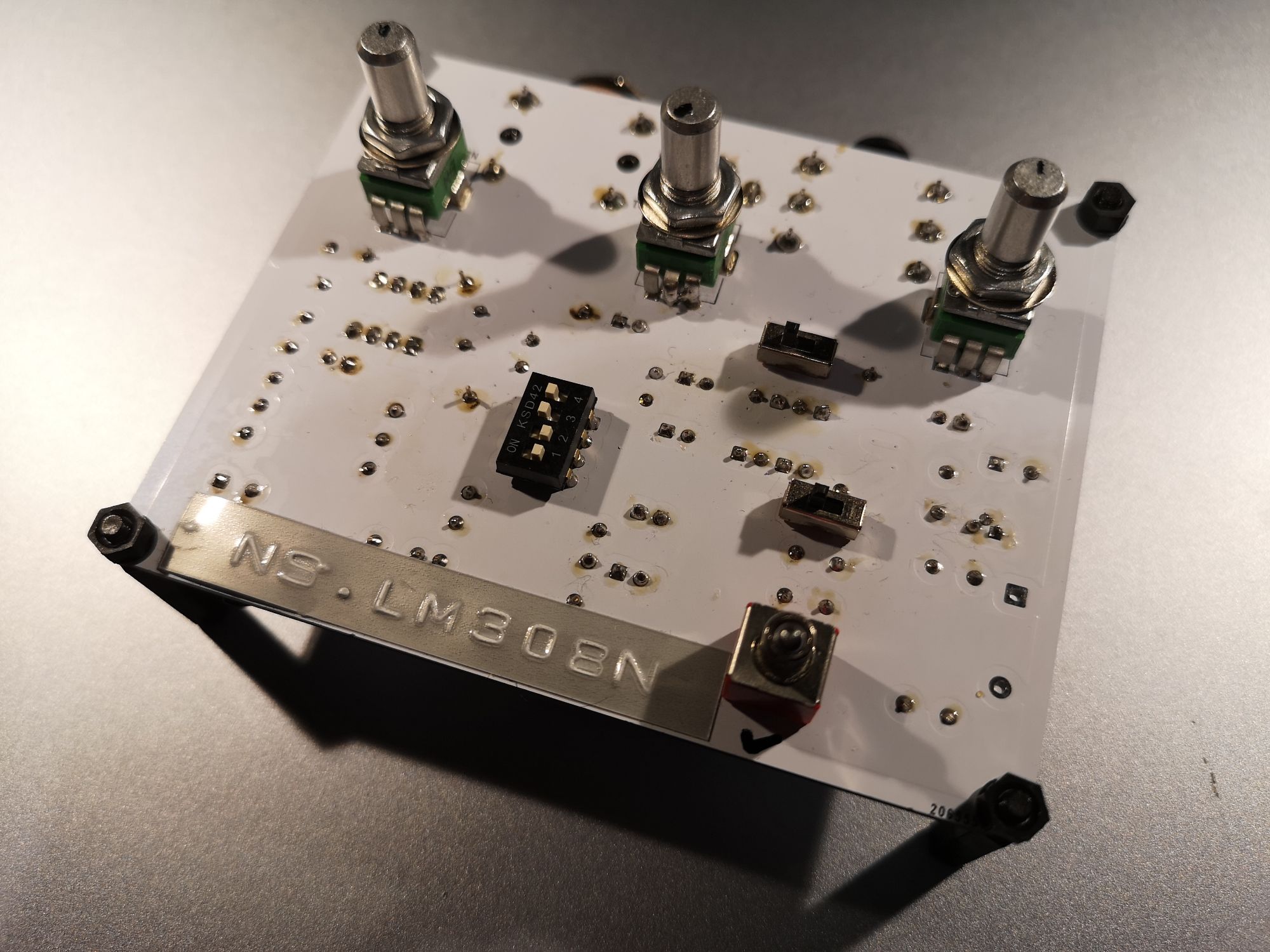 この個体はモトローラー製のLM308Nというオペアンプが搭載されているところから1990年前後の個体だと思われます。