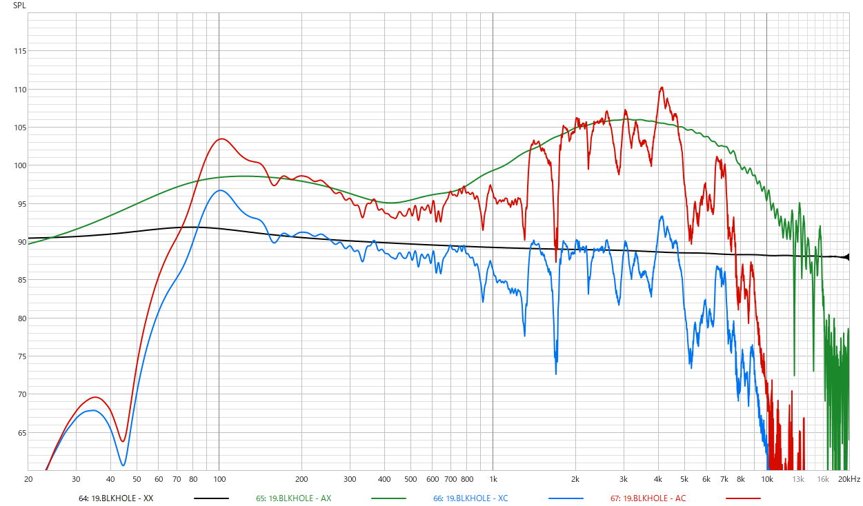 プリアンプ側で高域と低域を強調する周波数特性でしたが、おそらく高域はスピーカー側でサチっていると思われそれほど音量が上がっていないのに対して(これは他のモデルでは違う例を確認しています)低域は確実に音量がアップしているようですね。