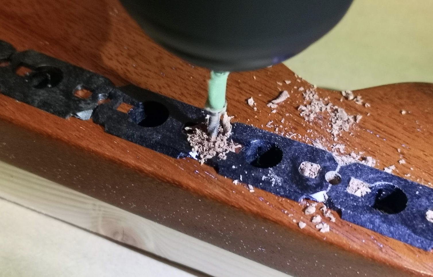 取り付けする際にこのボルト穴を開ける必要があるが、穴の位置によっては隣り合うぺぐの位置がズレてしまい、更にこれが相乗され全てのペグの位置決めが難しくなるからである。